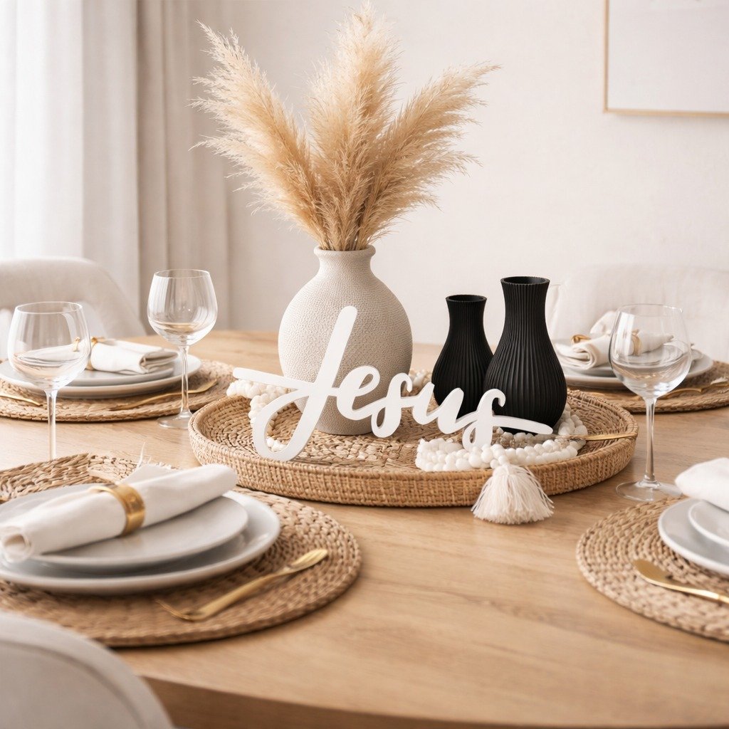 Decoração Escrita Palavra Jesus +2 Vasos Modernos Minimalista Mesa Igreja