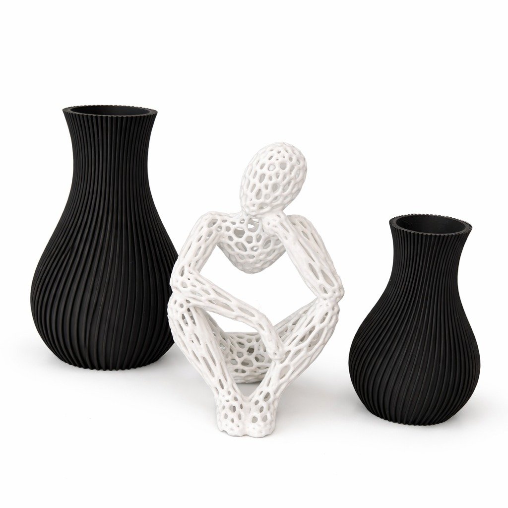 Eleve o estilo do seu espaço com um conjunto decorativo que transmite modernidade, elegância e personalidade. Composto por uma escultura abstrata em forma de pessoa e 2 vasos decorativos, esse kit é perfeito para quem busca uma decoração minimalista e impactante ao mesmo tempo.