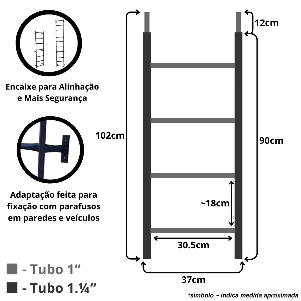 *Não recomendamos fixação em paredes muito antigas ou sem estrutura adequada, pois o peso de uma pessoa pode romper a estrutura se o local estiver frágil, instalações desse tipo por conta e risco do cliente*