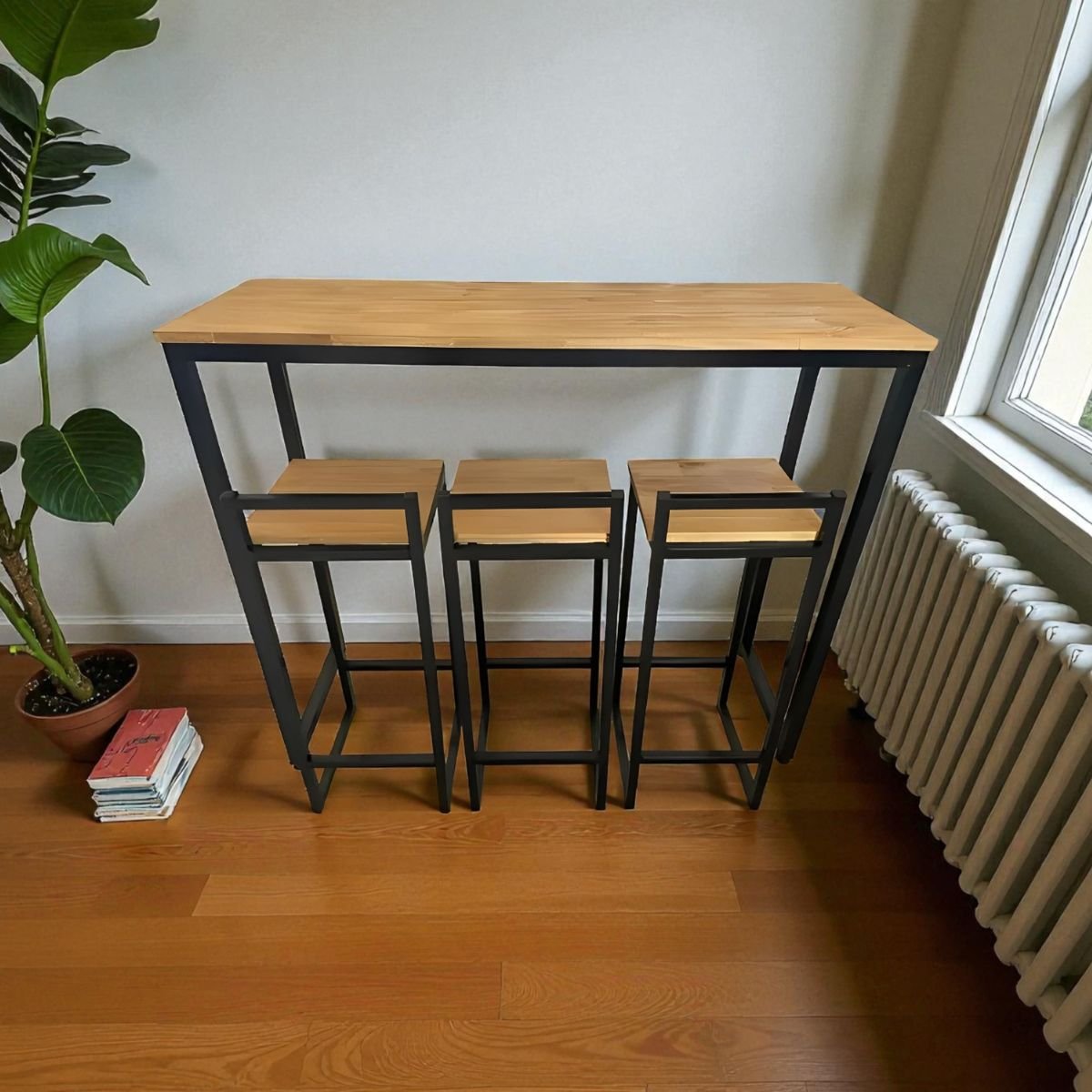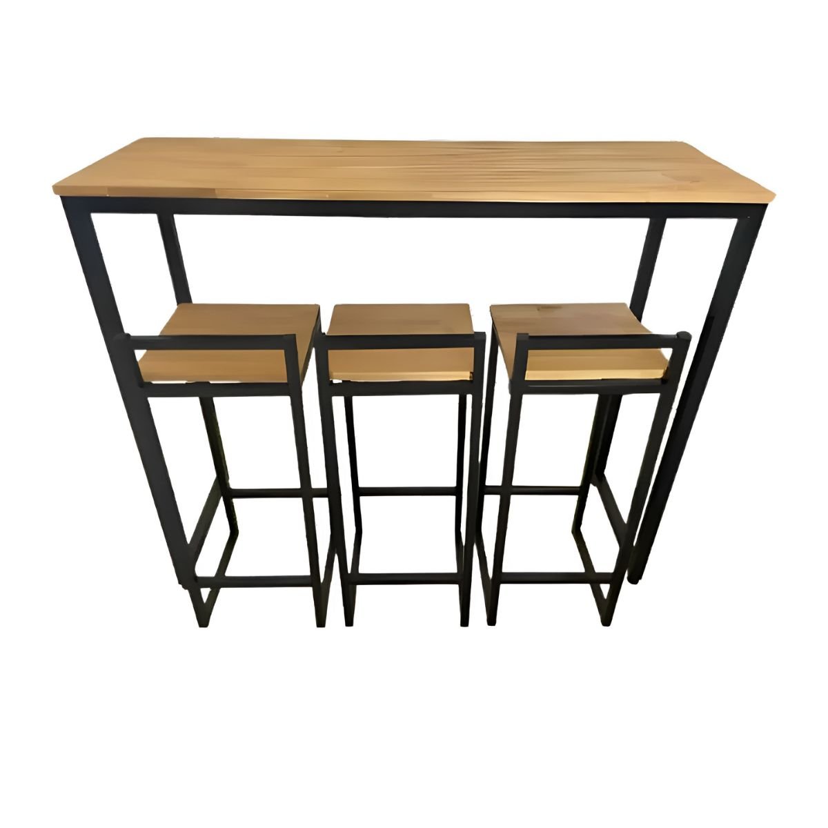 Com um design minimalista, a Mesa de Ferro e Madeira Maciça com 3 Banquetas Bistrô no Estilo Industrial é uma ótima opção para quem quer um design clean e moderno, se torna perfeita em Cozinha, Churrasqueira, e Diversos Ambiente, onde sua criatividade permitir.